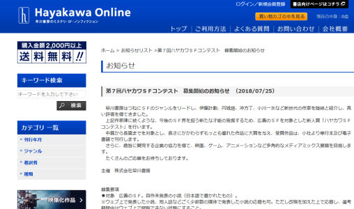 広義のSF短編を募集。